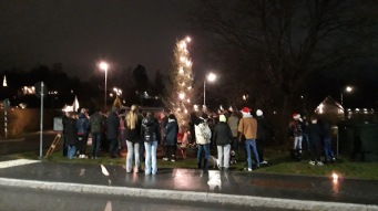 Trots det dåliga vädret njöt många boende av tillfället då julgranen tändes